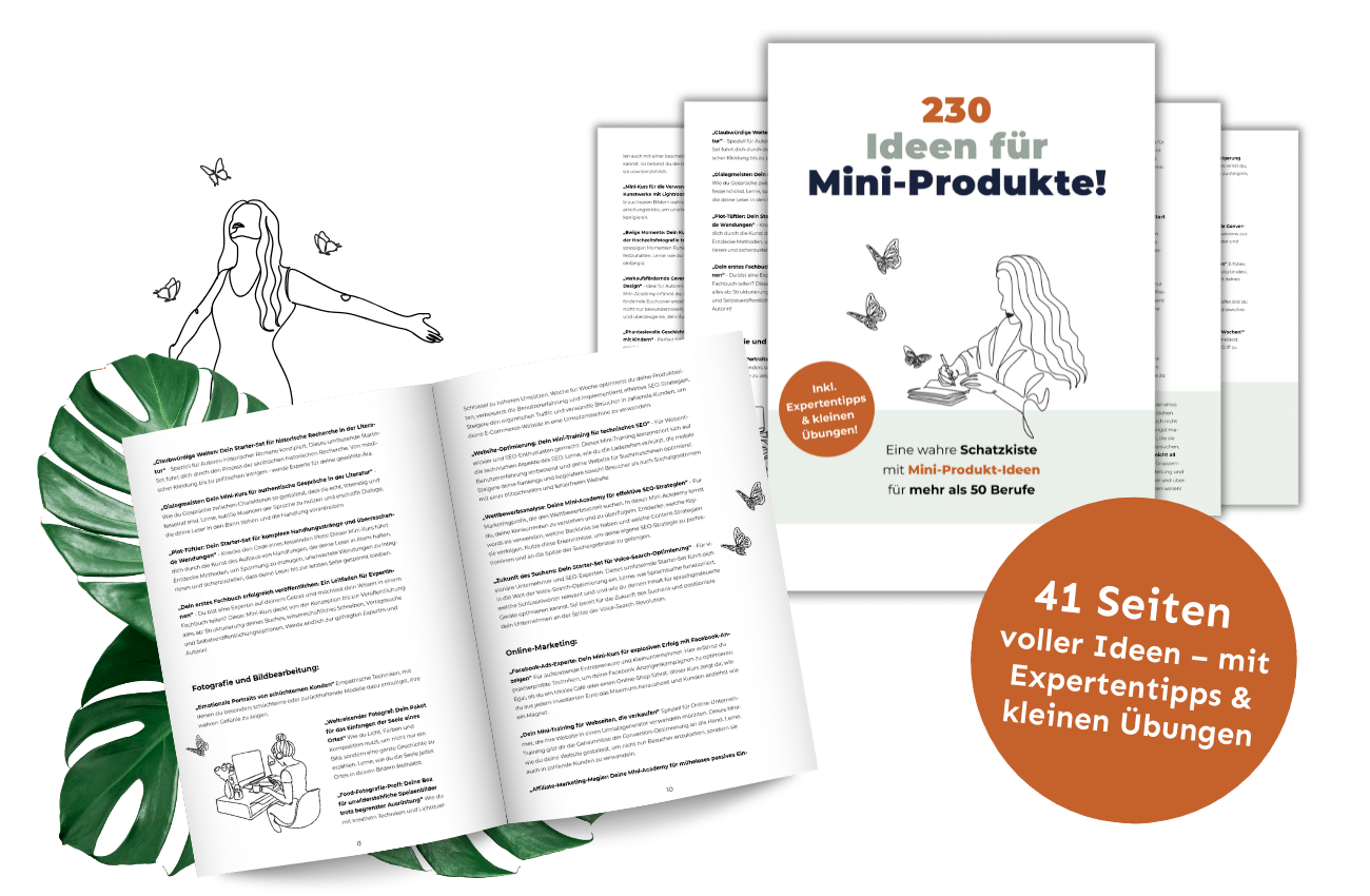 Um dir dabei zu helfen, habe eine Sammlung aus 230 spezifischen Miniprodukt-Ideen für dich zusammengestellt. Du findest hier nur Ideen, die echte Bedürfnisse ansprechen und das Potential für richtige “Must-Have-Produkte” haben!