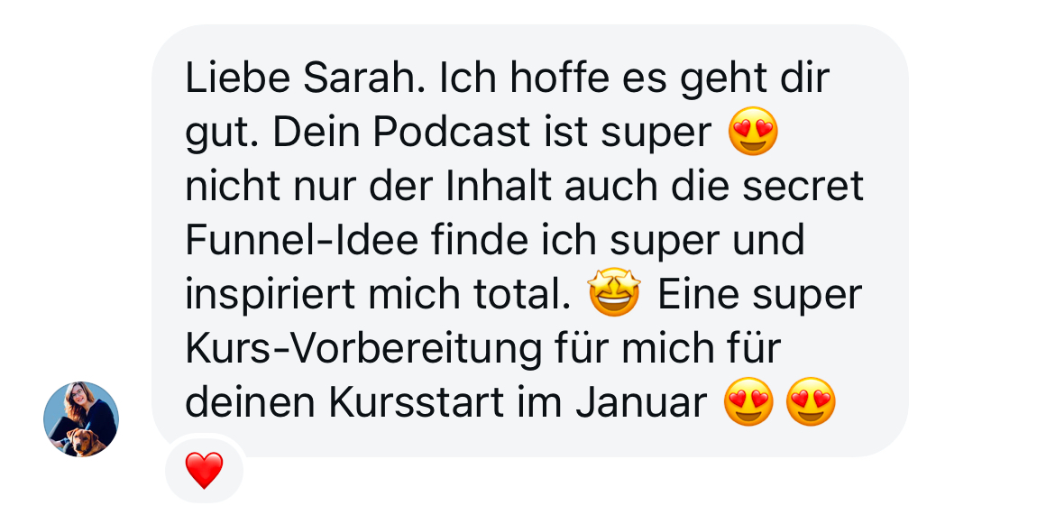 In diesem Secret Podcast lasse ich dich exklusiv hinter die Kulissen blicken und teile Funnel-Strategien, die ich sonst nur meinen Kundinnen im hochpreisigen Gruppenprogramm verrate.